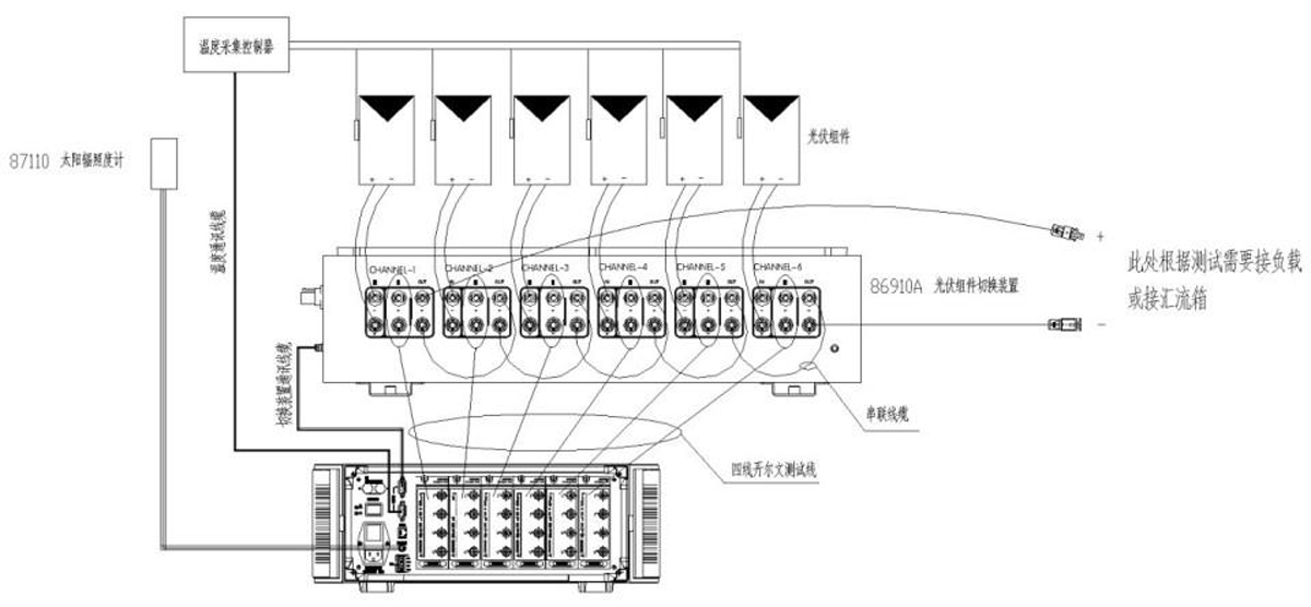 2. 支持多路輻照度溫度數據輸入功能,可通過關系設置,將一組輻照度溫度數據對應相關被測光伏組件。