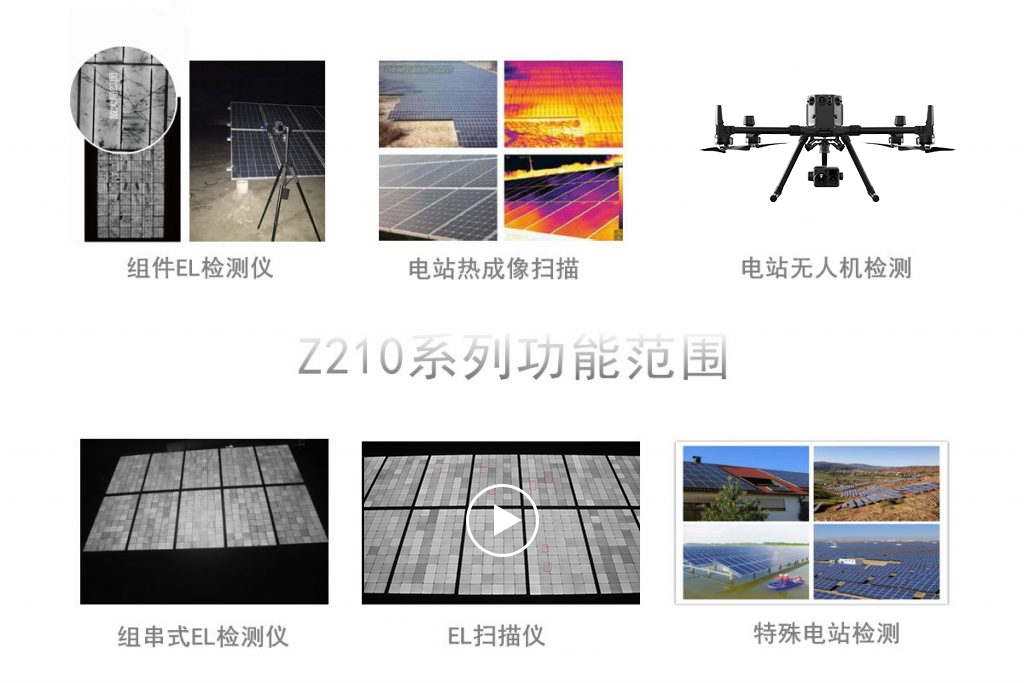 大面積的檢測以及日常運(yùn)維性的巡檢是光伏電站市場的發(fā)展趨向,電池板的質(zhì)量問題直接影響著發(fā)電效率以及成本收益,LXH210應(yīng)運(yùn)而生,LXH210具備了可切換掛載 EL檢測相機(jī)/ EL掃描相機(jī)/ 紅外熱成像相機(jī)/ 進(jìn)行針對性的循環(huán)檢測,LXH210可對15KM范圍內(nèi)電站及電力系統(tǒng)進(jìn)行巡檢,檢測類型包括了 光伏電站方陣組件的 局部或者大面積的組件EL內(nèi)部隱裂缺陷檢測、熱斑檢測等