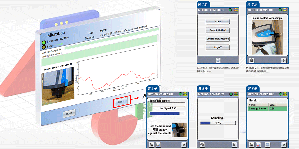 廣受贊譽(yù)的 Agilent MicroLab Mobile 軟件能夠使經(jīng)驗(yàn)各異的用戶只需經(jīng)過極少的培訓(xùn)即可利用設(shè)備獲得最佳的結(jié)果。該軟件將引導(dǎo)用戶完成整個(gè)測量過程,并且配有無線射頻識(shí)別的采樣接口能夠確保方法與測量參數(shù)完美匹配。這些創(chuàng)新意味著系統(tǒng)將迅速成為您的公司工作流程的重要組成部分
