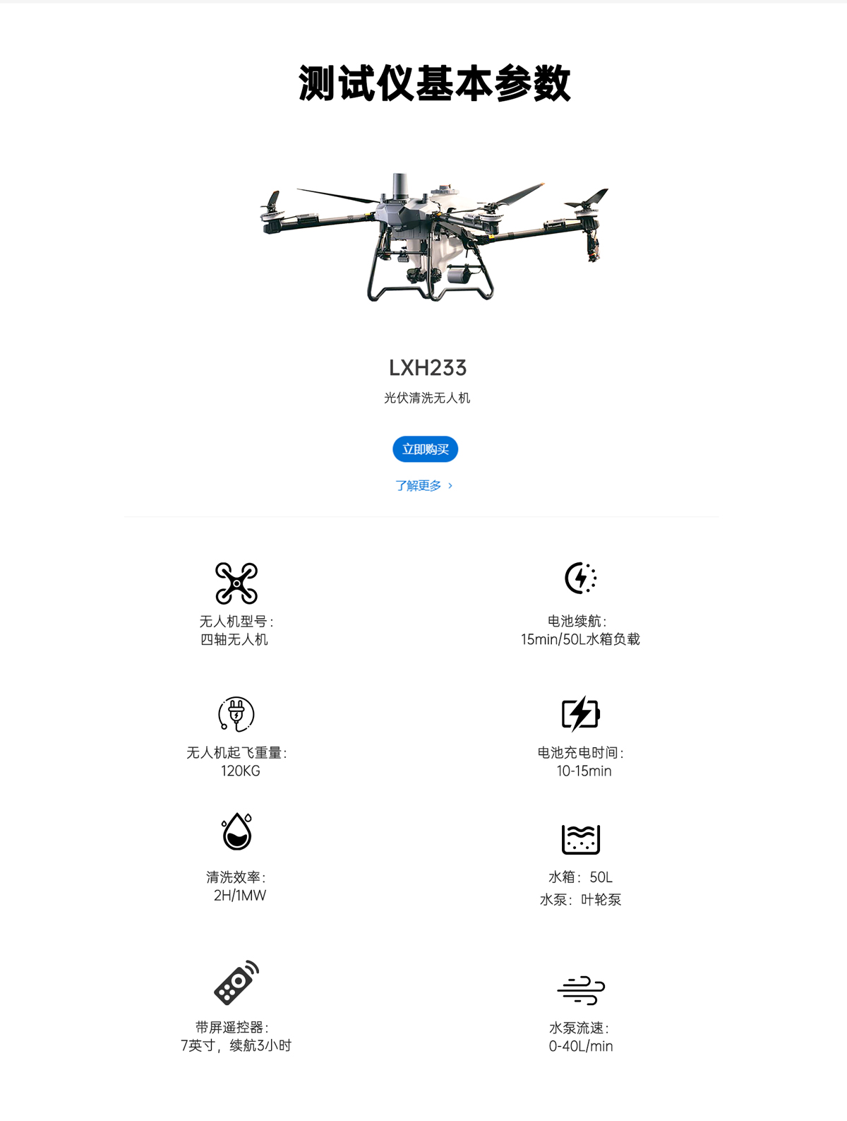 LXH233可載重60kg吊裝,不僅可滿?光伏?洗?常使?,同時(shí)可拓展,光伏組件吊裝以及設(shè)備裝置的吊裝?作使?,具備更多的應(yīng)?場(chǎng)景。